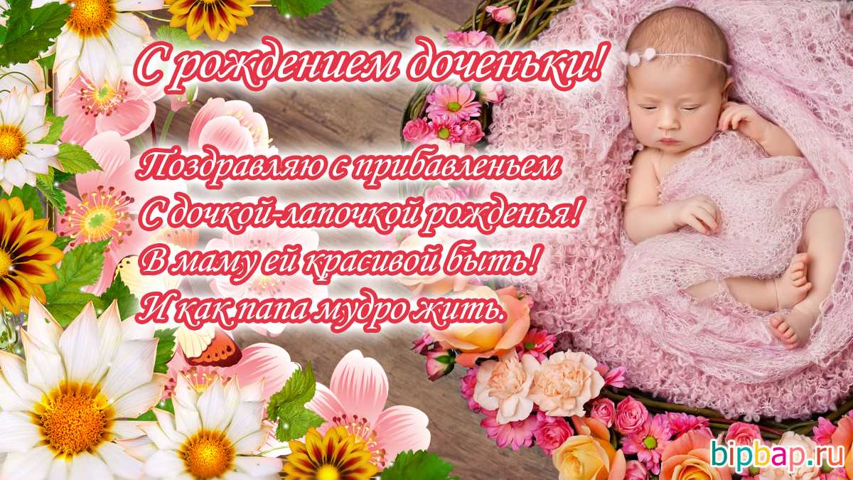 Красивая открытка с рождением дочки и поздравлением в стихах