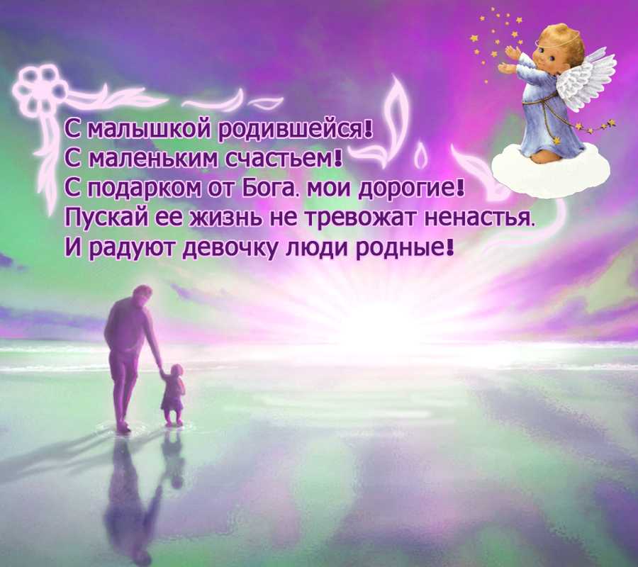 Кудряшки и платьица, бантики и куклы, сказки на ночь и звонкий смех. В доме появилась маленькая девочка, и мы спешим поздравить родителей с ценным приобретением! Отныне радость брызжет через край, отныне – заботы, хлопоты, бессонные ночи компенсируются детским голоском, сладким запахом младенца и теплой солнечной улыбкой. Пусть впереди малышку ждет яркий и радостный мир, в котором ей будет уютно жить. Пусть ласковые руки мамы и крепкое плечо папы всегда помогут справиться с маленькими неприятностями, поддержат и обогреют. Желаем, чтобы каждый день вплетал в венок дочурки красочные впечатления, радостные встречи, интересные дела. Здоровья, счастья и захватывающего пути, по которому так легко будет бежать маленьким детским ножкам!