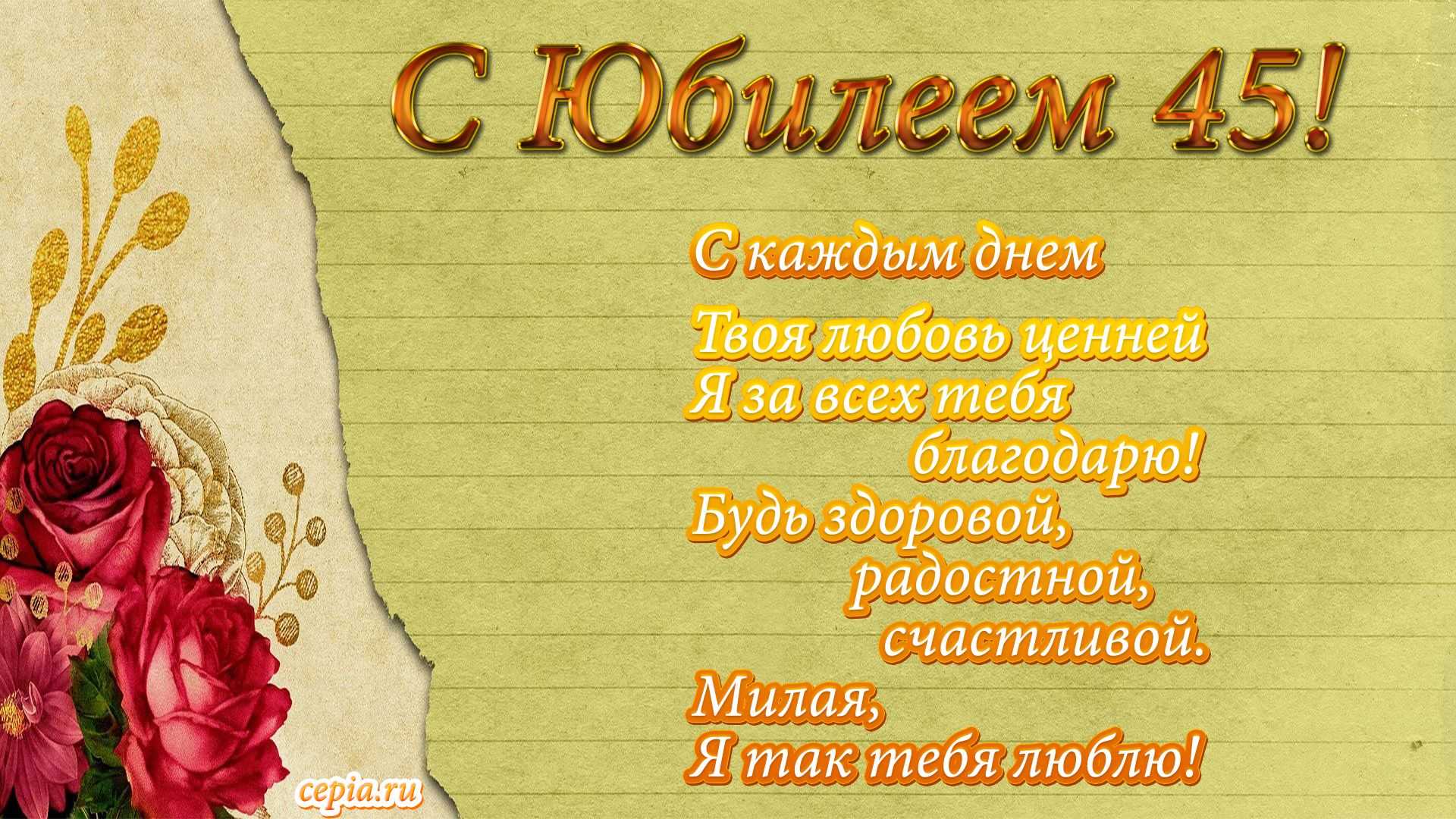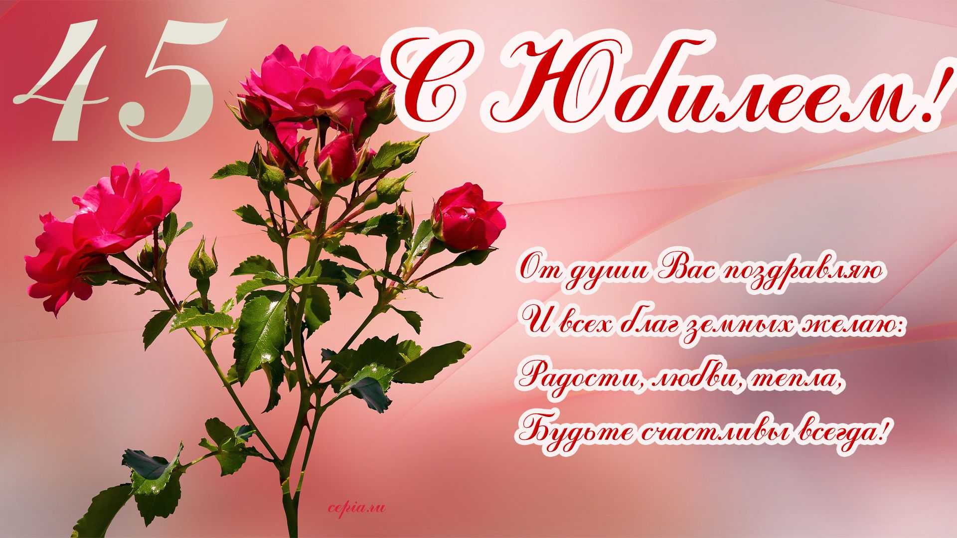 Красивая открытка на 45-летний юбилей