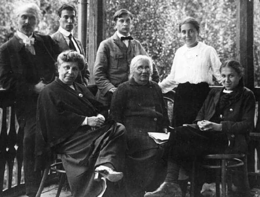 Лето 1916 года: Леонид Осипович Пастернак, старший сын Борис, Александр и старшая дочь Жозефина. Сидят: в центре жена художника Розалия Исидоровна, ее мать Берта Саймайловна Кауфман, справа Лидия, младшая дочь