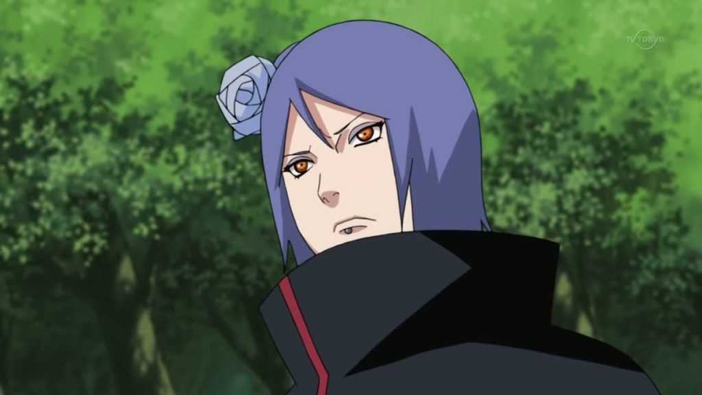 , которые предоставляли свои услуги другим деревням в качестве группы наёмников, зарабатывая деньги, необходимые для финансирования своих долгосрочных планов. Годы спустя, всё ещё сохранившие верность собственному видению Амегакуре, Конан и Нагато начали гражданскую войну в деревне, чтобы свергнуть Ханзо. Нагато в конце концов убил Ханзо, и Конан переняла его функции, чтобы миру казалось, что он всё ещё жив и контролирует Амегакуре. В аниме, она участвовала в вербовке Хидана в организацию.