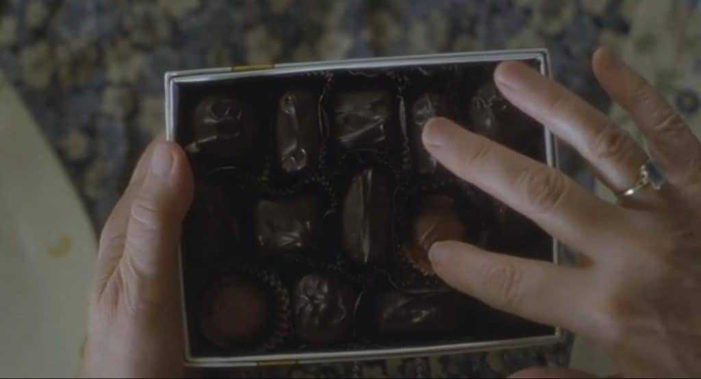 Бегство героев фильма происходит не только с помощью наркотиков (хотя, в прямом или метафорическом смысле, многое в фильме можно назвать наркотиком) — это и никотин, алкоголь, таблетки и даже шоколад и конфеты. И правда — изначально для Сары кусочком счастья были шоколадные конфеты, которым позже заменой послужили убийственные таблетки.