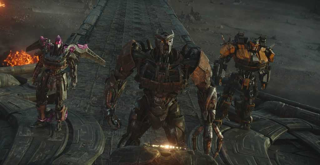 Найтберд, Скурдж и Батлтрэп на кадре из фильма «Трансформеры: Восхождение Звероботов» (2023)